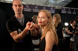 Frederic Fekkai, lead hair stylist of Paul Hanlon, created a deconstructed look for the Vera Wang Spring-Summer 2013 runway show.