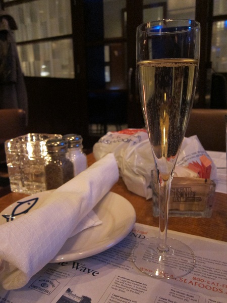 For dessert, I ordered the Boston Cream Pie, which had a chocolate topping that was deliciously rich and layered on top of a perfectly moist cake. I paired that with a glass of sparkling, Veuve Clicquot and hot tea to follow. One of the few places where they serve the tea with freshly steeped tea leaves – the perfect ending to any meal!